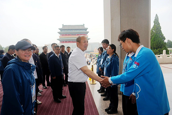 5月23日,北京化工集團(tuán)黨委常委、副總經(jīng)理韓寶海一行來(lái)到毛主席紀(jì)念堂,看望慰問(wèn)開(kāi)展志愿服務(wù)的技師學(xué)院青年志愿者。