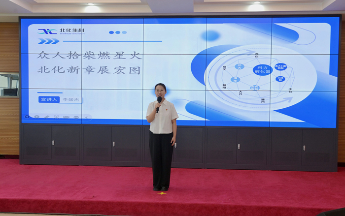 在首先舉行的“職工宣講比賽決賽暨先進(jìn)事跡報(bào)告會”上,從預(yù)賽29名參賽者中脫穎而出的選手們,依次走上講臺,深情宣講扎根“三個(gè)北化”建設(shè)一線的鮮活故事。來自北化生科、華騰檢測、化研院、北搪公司的4名宣講員進(jìn)行了精彩的宣講展示,他們生動講述了北化人面向生物醫(yī)藥新“藍(lán)海”的無畏拓進(jìn),在市場營銷、科研開發(fā)、信訪維穩(wěn)等重點(diǎn)工作中攻堅(jiān)克難的感人故事。來自技師學(xué)院、北普公司、北化房地產(chǎn)公司的3名宣講員進(jìn)入決賽,他們或講述職業(yè)教育的酸甜苦辣、或反映現(xiàn)代產(chǎn)線的紛繁復(fù)雜、或展示酒店行業(yè)的微笑服務(wù),娓娓道來的深情告白,無不體現(xiàn)出北化人心系首都發(fā)展安全、情系百姓健康幸福的錚錚誓言。