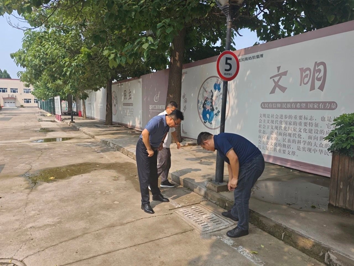 全域排查,織密安全 “防護(hù)網(wǎng)”。為有效排查隱患,安保部組織專業(yè)人員對(duì)園區(qū)開展“拉網(wǎng)式”防汛檢查,重點(diǎn)聚焦排水系統(tǒng)、電力設(shè)施、?;穫}(cāng)庫(kù)等關(guān)鍵部位,清理排水管道雜物,保障雨水排放“主動(dòng)脈”暢通;細(xì)致排查電力設(shè)備運(yùn)行狀態(tài),筑牢供電 “穩(wěn)定線”;加固?;穫}(cāng)庫(kù)防護(hù)措施,嚴(yán)防雨水倒灌引發(fā)安全風(fēng)險(xiǎn)。對(duì)檢查中發(fā)現(xiàn)的問(wèn)題,立即采取整改措施,做到不留死角、不留隱患。