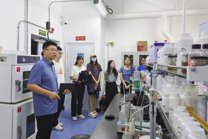 隨后,在總工程師崔正的帶領(lǐng)下,師生參觀了華騰新材辦公場(chǎng)所、產(chǎn)品陳列、實(shí)驗(yàn)室等,促進(jìn)了學(xué)生們對(duì)理論知識(shí)與生產(chǎn)應(yīng)用相結(jié)合的感知,也對(duì)實(shí)驗(yàn)室安全管理有了更加直觀的認(rèn)識(shí)。