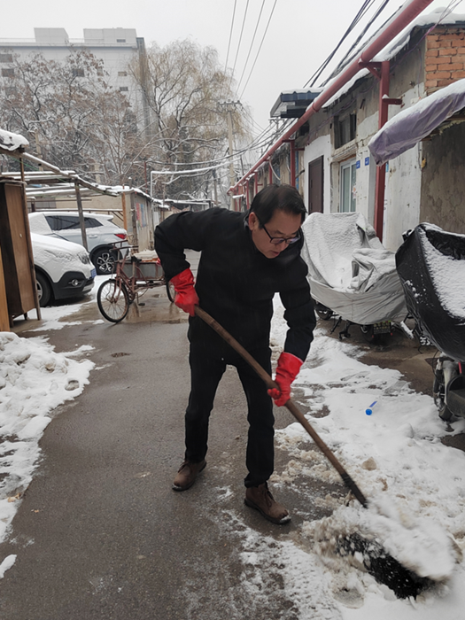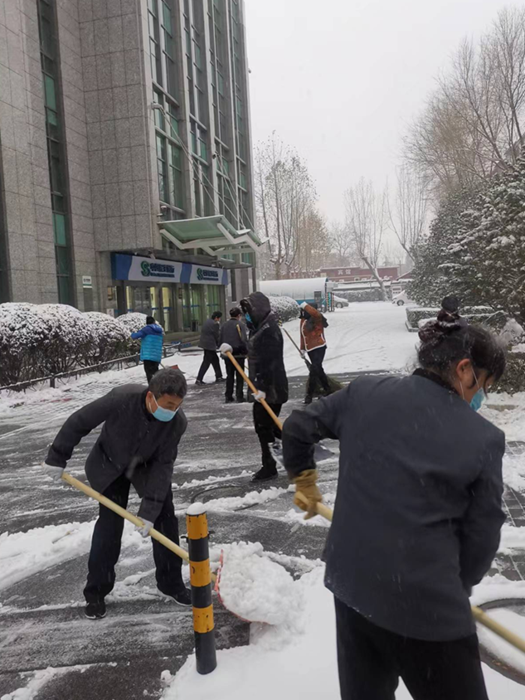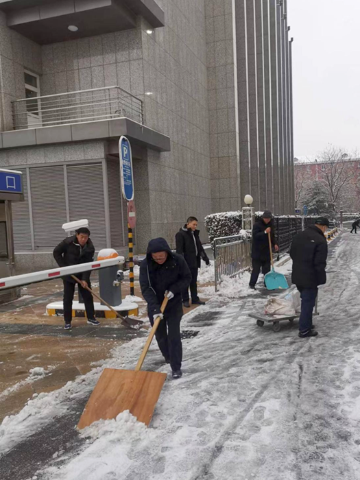 剛到單位的干部職工,紛紛拿起掃帚、鐵鍬,加入到掃雪除冰大“會(huì)戰(zhàn)”的隊(duì)伍中。大家齊心協(xié)力、現(xiàn)場一片熱火朝天,干凈整潔的道路很快清掃出來,保證了干部職工出行安全。