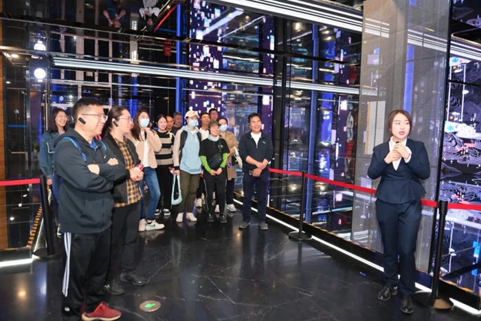 在講解員的引導(dǎo)下,參觀的同志們認(rèn)真聆聽、親身感受森林書苑、元宇宙體驗(yàn)館、古典文獻(xiàn)館、藝術(shù)文獻(xiàn)館等區(qū)域的設(shè)計(jì)理念,全視角觀摩智能化立體書庫為讀者提供的便捷、高效的服務(wù),沉浸式體驗(yàn)“數(shù)智賦能”“AI+圖書館”的跨界融合新模式。
