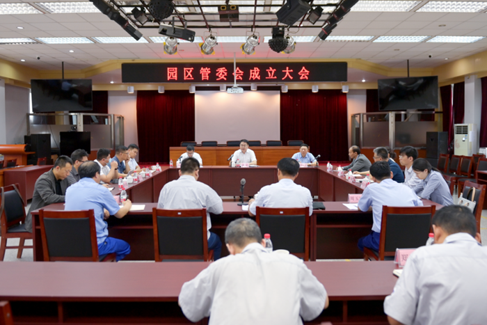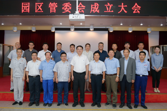 北京化工集團(tuán)黨委常委、組織部部長(zhǎng)劉士義宣讀集團(tuán)黨委常委會(huì)審議批準(zhǔn)的園區(qū)管委會(huì)組成人員和相關(guān)職責(zé)。