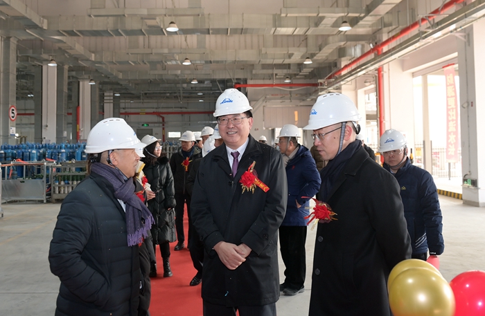 鼓震鑼鳴拓新業(yè),金獅獻(xiàn)瑞展宏圖。新年伊始,北京化工集團(tuán)保障首都、服務(wù)首都的腳步又邁出實(shí)質(zhì)性一步。1月8日上午,北普公司包裝氣新裝置啟動儀式在華騰科技園北普公司新工廠舉行。該套裝置的順利投產(chǎn),是北京化工集團(tuán)更好服務(wù)首都發(fā)展,為城市安全運(yùn)行、經(jīng)濟(jì)發(fā)展做好服務(wù)的重要體現(xiàn)。同時(shí),東四環(huán)老廠區(qū)裝置的同步停產(chǎn)退出,也為首都城市疏解整治、安全消隱創(chuàng)造了條件。北京化工集團(tuán)黨委書記、董事長陳宇,林德大中華區(qū)總裁李臻旻,中國信達(dá)資產(chǎn)管理股份有限公司董事陶和愛出席啟動儀式。