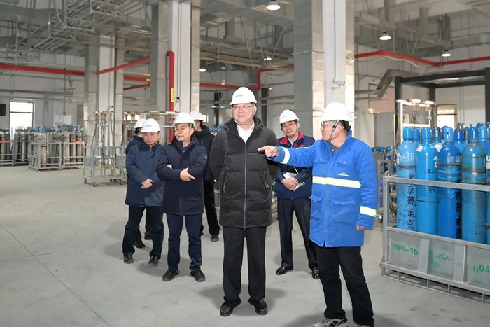 陳宇首先走進(jìn)北普工廠,深入生產(chǎn)一線了解氣體保供情況 。陳宇詳細(xì)查看了北普工廠灌裝生產(chǎn)線運(yùn)行情況、氧氣瓶安全裝卸、運(yùn)輸和各類氣瓶的存儲(chǔ)情況。詳細(xì)了解了節(jié)日期間首都各大醫(yī)院需求情況及保障措施。叮囑一線干部職工要始終把安全生產(chǎn)放在首位,堅(jiān)決扛起節(jié)日期間安全生產(chǎn)主體責(zé)任,同時(shí)要加強(qiáng)調(diào)度,為首都各大醫(yī)院提供及時(shí)便捷的保障服務(wù),確保首都市民度過(guò)一個(gè)安全健康的春節(jié)。