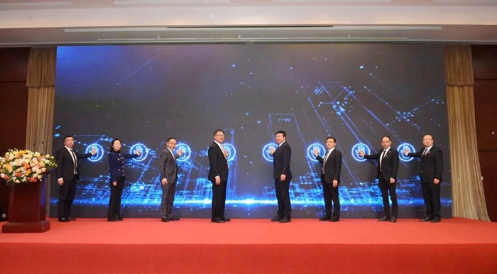 與會相關領導、專家共同為“雪蓮”微創(chuàng)手術手套揭幕。